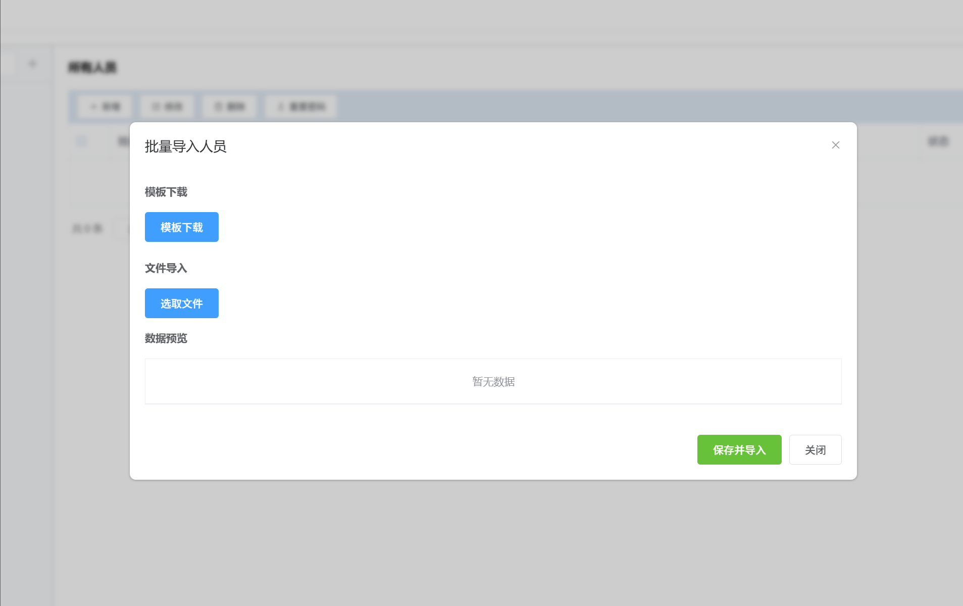 批量导入人员与组织,可以下载相应的模板,如下所示: